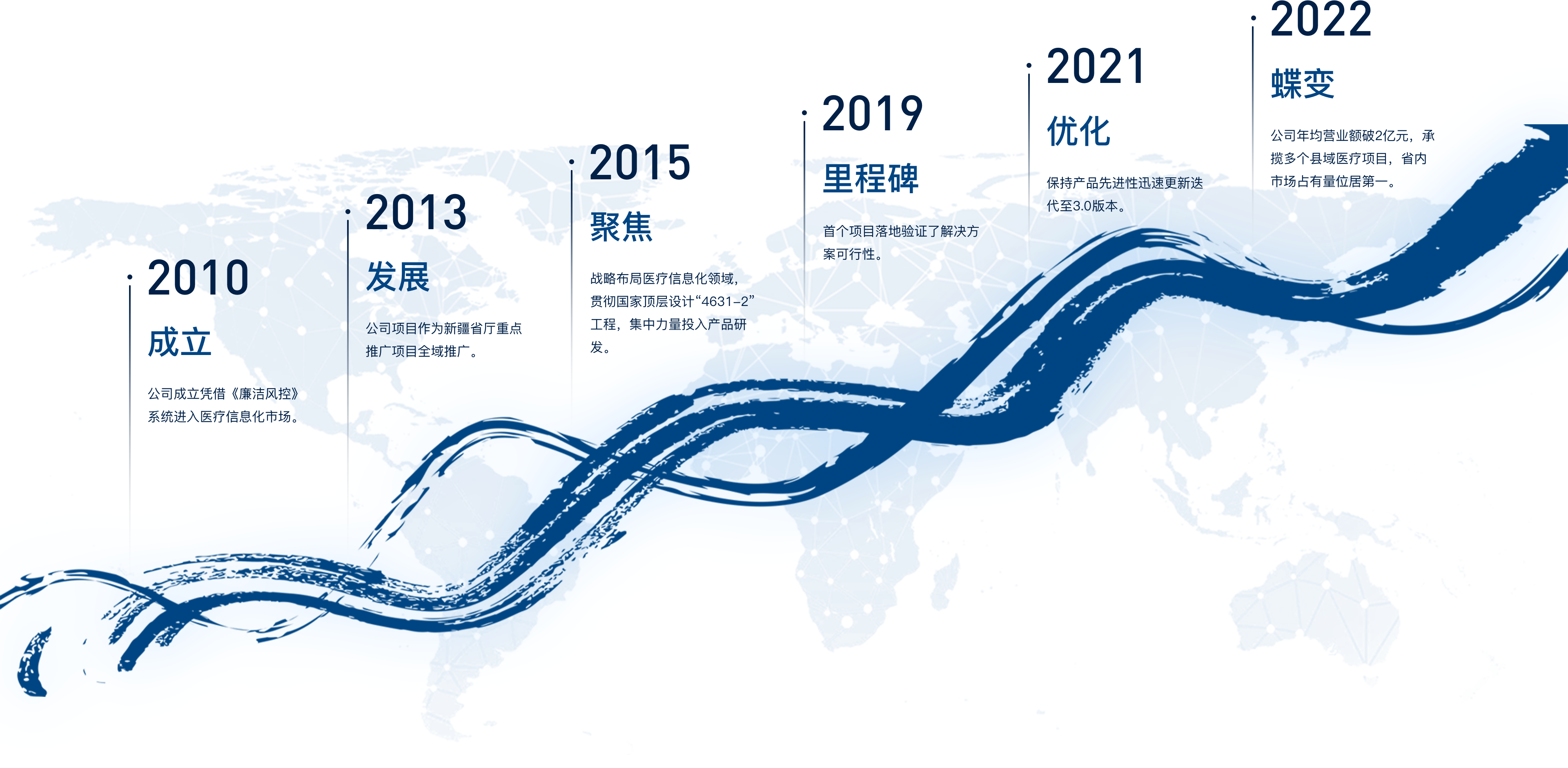 始于2010年,專注提供醫療、衛生、健康領域信息化、智能化整體解決方案,以“用科技手段服務大眾健康”為己任,以“大健康、新醫療”產業規劃為指導,致力于醫療健康領域的技術創新、產品研發及推廣應用,將傳統的醫療衛生信息化與“互聯網+”健康服務相融合,推動患者診療信息共享,優化醫療資源配置,服務大眾健康。